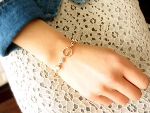 上品なホワイトの人工宝石が、シックで落ち着いた大人の腕元を演出してくれます♪