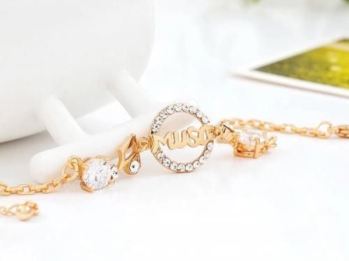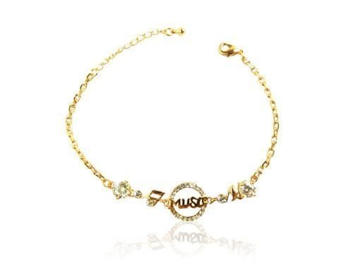 音符とmusicをラインストーンで煌びやかに飾ったブレスレットです。