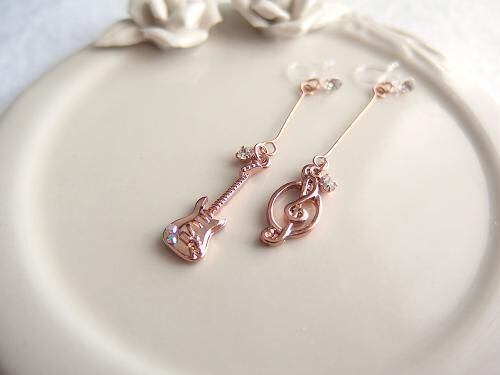 ギターとト音記号で耳元を華やかに♪