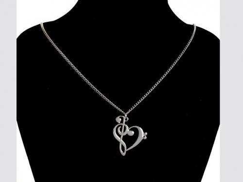 ト音記号とへ音記号をくっつけてハート型にした、遊び心のあるネックレス♪