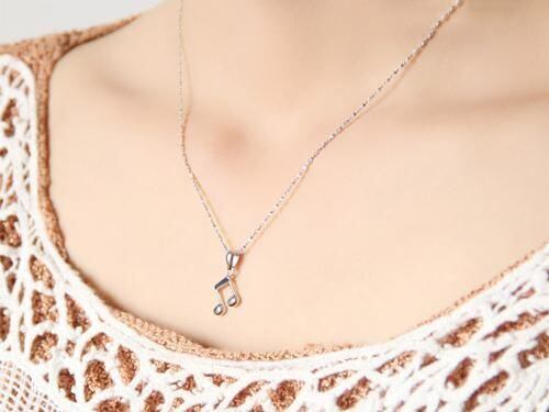 小ぶりで可愛らしい八分音符のデザインが、胸元をさりげなくオシャレに演出。