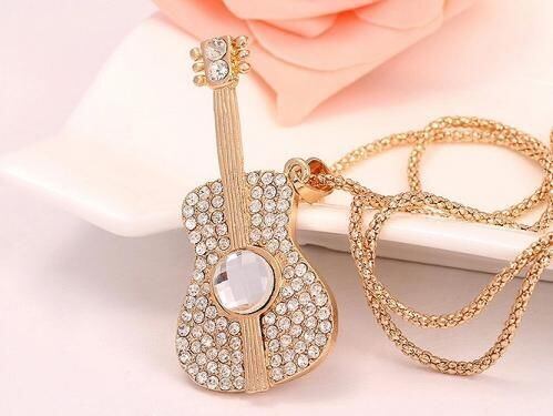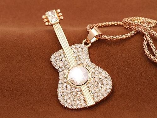 クラシックギターにラインストーンを飾った、煌びやかなネックレス。
