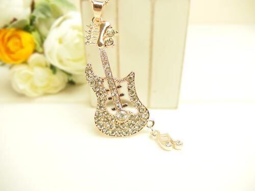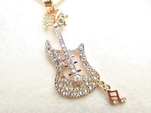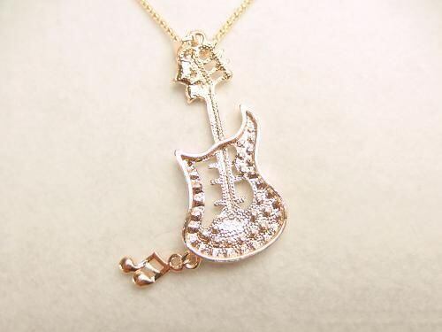 エレキギターにラインストーンを飾った、クールで煌びやかなネックレス。