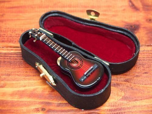 高さが10cmとしっかりしたサイズ感なので、弦やブリッジのリアルな作りがより際立ちそうです。こちらもギターケース型ボックス付きということで、特別感を強調して整えました。
