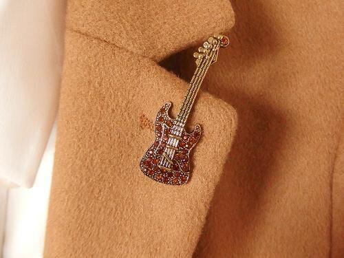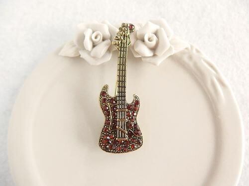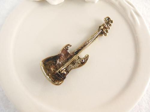 エレキギターにラインストーンを飾った、華やかなブローチです。