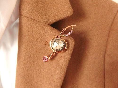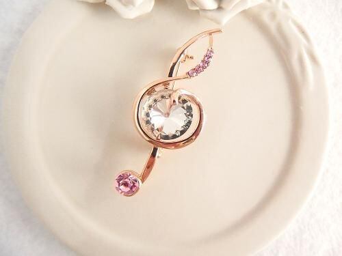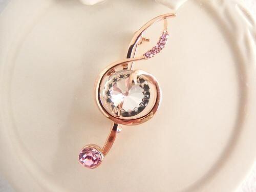 柔らかなピンクのクリスタルが、コーディネートに可愛らしくフェミニンな彩りを添えてくれます。音楽好きな方へのプレゼントにはもちろん、コンサートや発表会など、ハレの日の装いを華やかに演出するアイテムとしてもぴったりです。