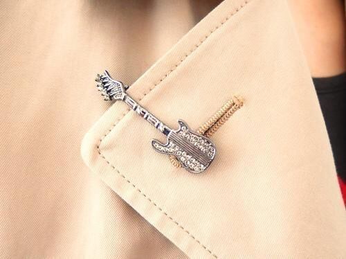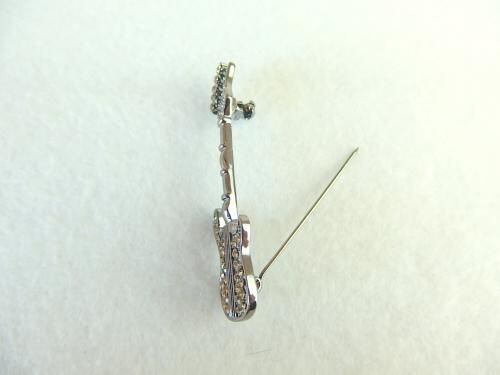 ブラックのエレキギターにラインストーンが映える、とてもクールでスタイリッシュなブローチですね。