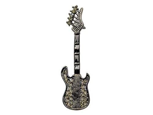 深みのあるブラックカラーが、ラインストーンの輝きをより一層引き立て、胸元をスタイリッシュに演出します。男女問わずお使いいただけるデザインですので、ギター好きな方へのギフトとしても大変喜ばれる一品です。