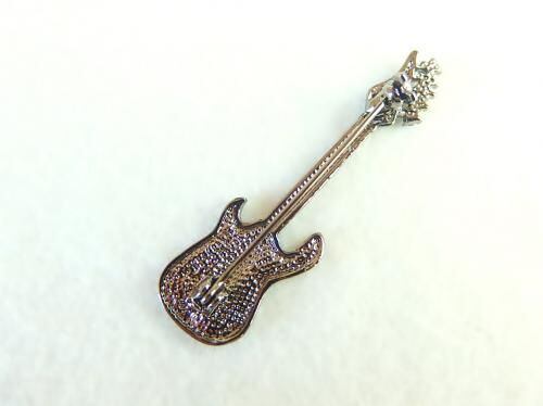 エレキギターにラインストーンを飾った、クールな印象のブローチです。