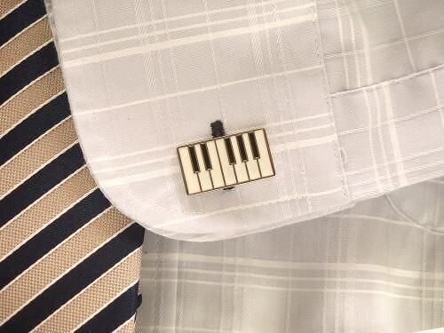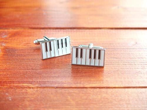 ピアノの鍵盤をモチーフにした、モダンで洗練されたデザインのカフスボタンです。