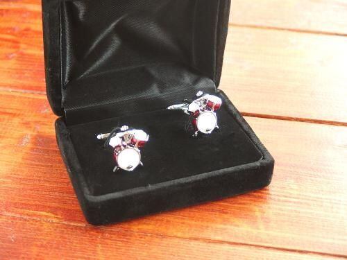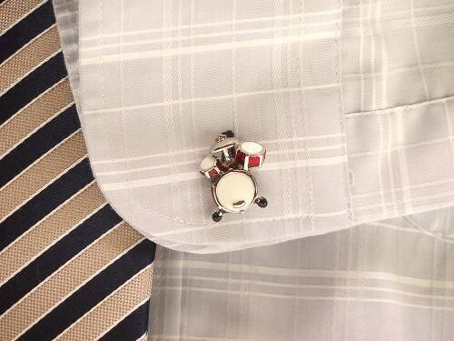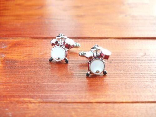 ドラムセットをモチーフにした、ユニークで存在感のあるカフスボタンです。