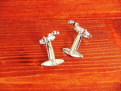 スウィヴル式で袖口の外側からボタンホールに差し込み、裏側の金具を倒して固定するT字状のタイプです。バイオリンの優雅なシルエットが袖元を上品に飾り、クラシック音楽好きな方や演奏家の方にぴったりのデザインです。