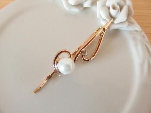 シンプルな音符に、一粒のパールをワンポイントであしらった上品な髪留めです。