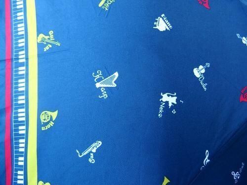 猫と楽器をモチーフにした、心ときめくデザインの折りたたみ傘です。