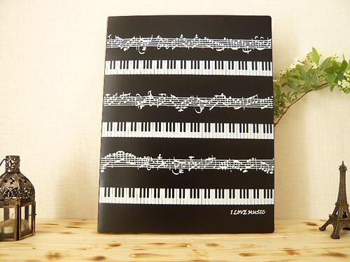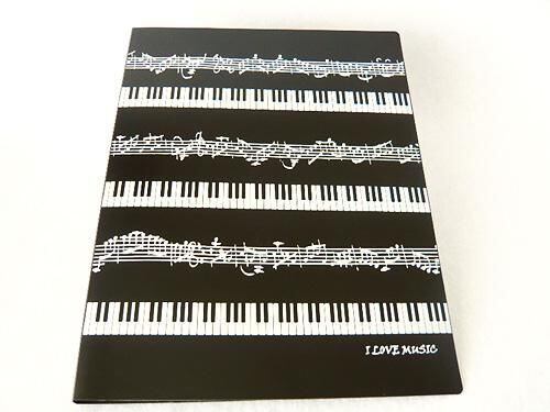ピアノ鍵盤と楽譜柄A4サイズのクリアファイルです。