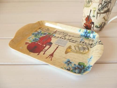 ホルンとチェロの風景柄ミニトレーです。