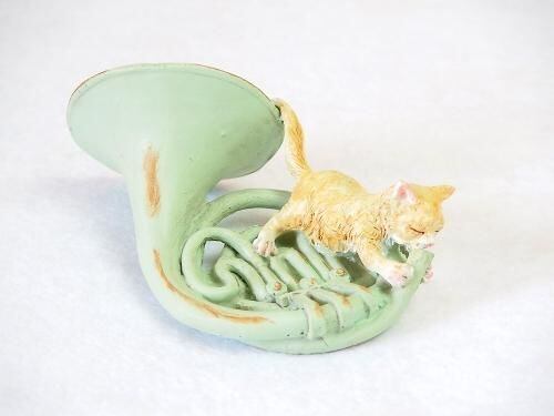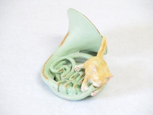 じゃれるようにホルンを吹く猫。
